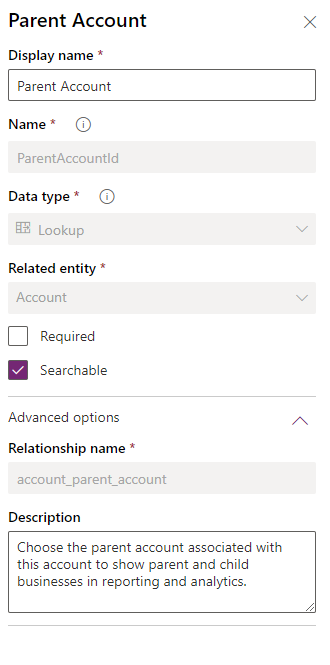 This field uses the relationship : account_parent_account