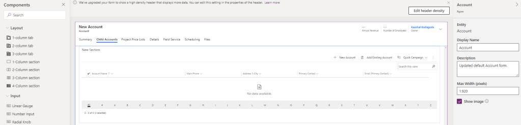 Go to Account main form. Add Component > 1 Column Tab and we can name this “Child Accounts”
