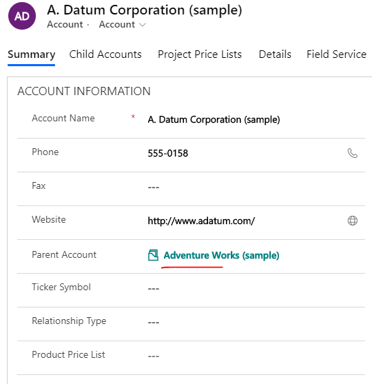 Now Dave is able to see the child accounts for any account in the account form. Our goal in this whole exercise was to provide relationship manager with a better experience by having all account related information in one place.