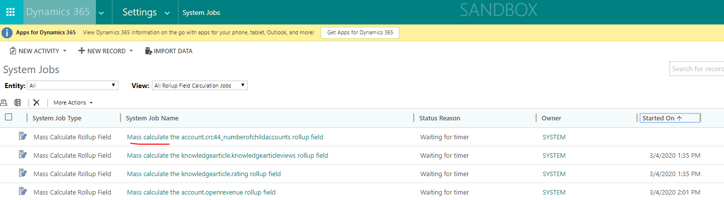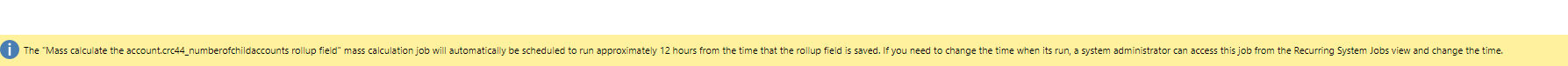 Important – Note that roll up calculation is a time consuming task and therefore, will not be executed as soon as you publish the new field. This will be scheduled normally during midnight.