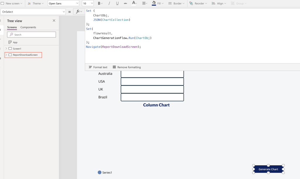 b. Add below line to the “Generate Chart” button OnSelect code.